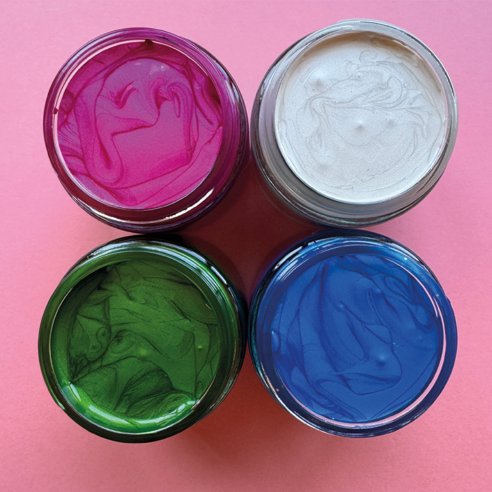 Inhalt: 4x 100ml pro Glas, Perl Pink, Perl Weiß, Perl Blau, Perl Grün