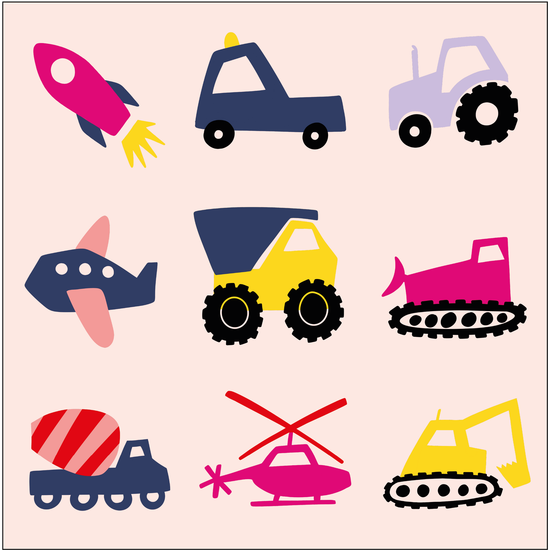 digitale Siebdruck Vorlage Fahrzeuge, Bugger, Hubschrauber, Rakete, Traktor, Flugzeug, Betonmischer, Frontlader